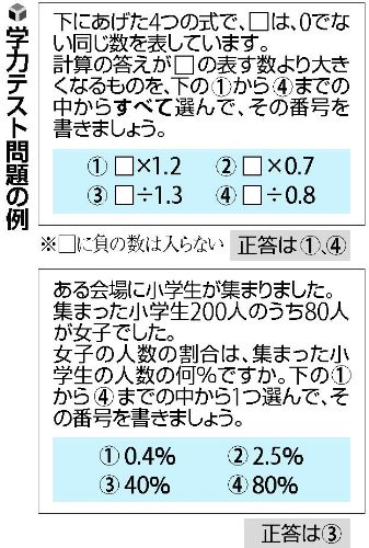 問題の正答率が45・3%など、類似した小数に関する問題の正答率がいずれも低く、最高でも55・7%だった。